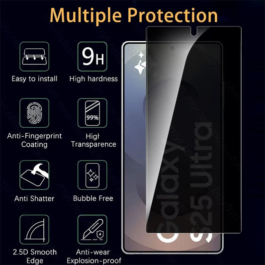 • 2PCS Privacy Tempered Glass Case for Samsung Galaxy S25/S25 Plus/S25 Ultra Edge 5G Fingerprint-Unlock Anti-Glare Anti-Spy Glass