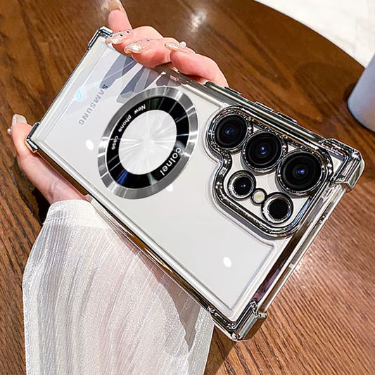 Luxury Magsafe Plating Case for Samsung Galaxy S25 Edge S24 Ultra S23 FE S22Plus S21 20 Shockproof Transparent Bumper Back Cover